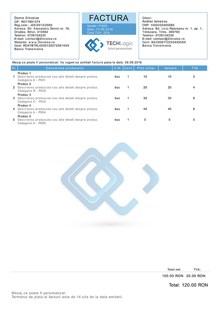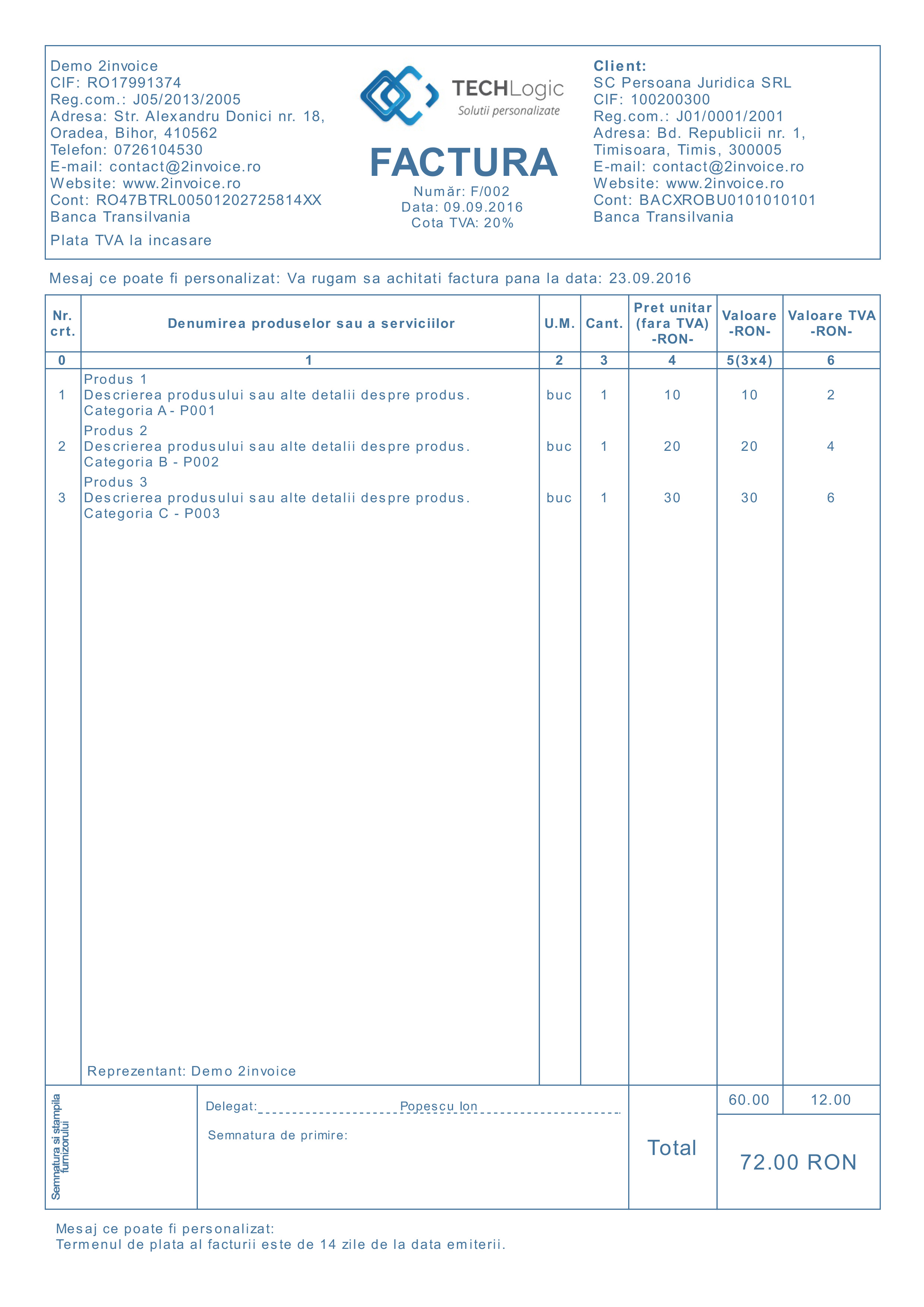 Simple și eficiente, au fost gândite să maximizeze spațiul alocat pentru afișarea produselor. Ideale în cazul în care facturile trebuie să conțină multe produse.