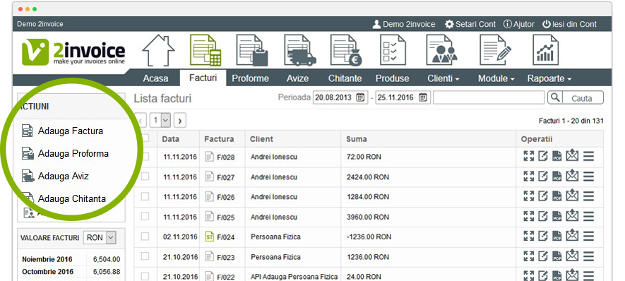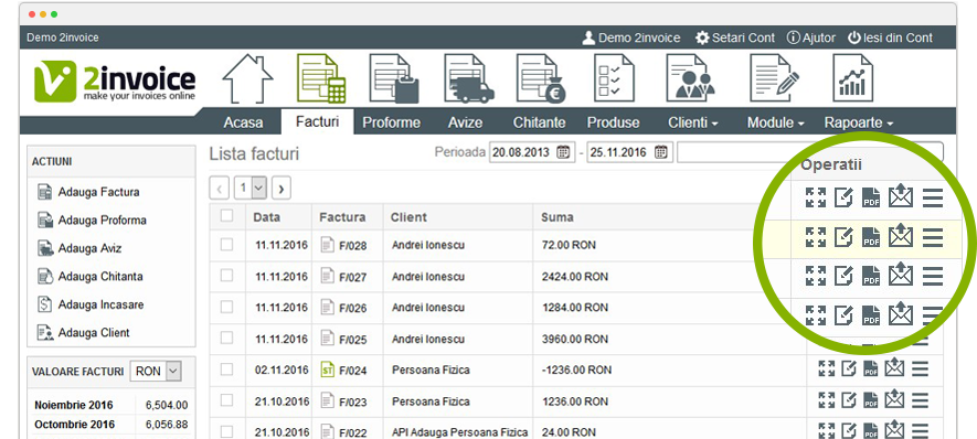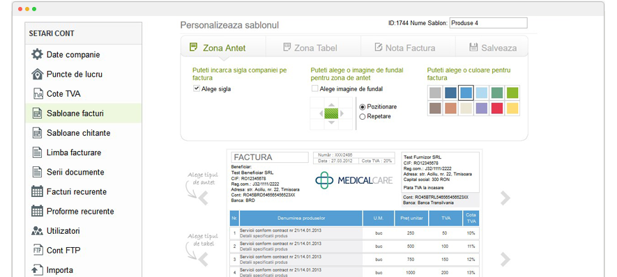 Poți combina diverse modele de antet și tabel pentru a obține aspectul dorit pentru facturile tale.