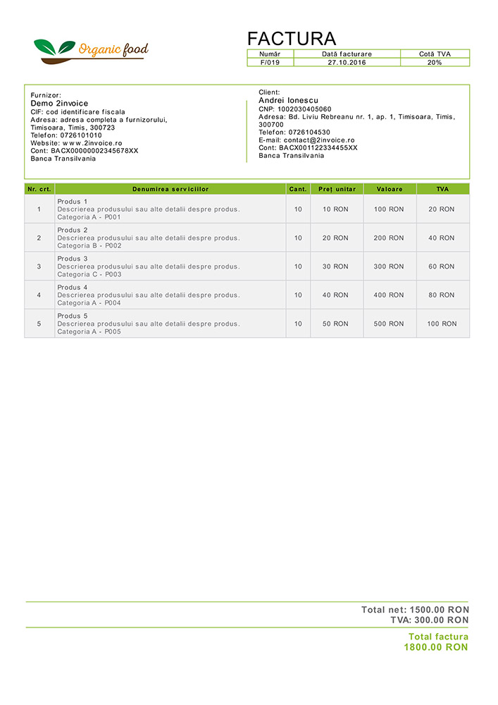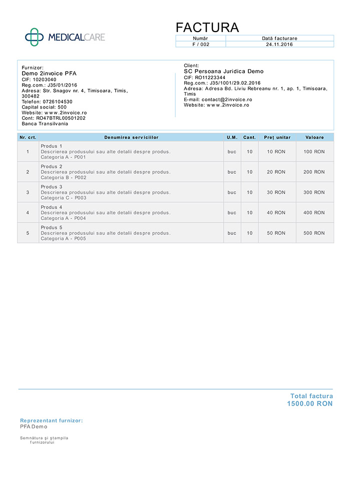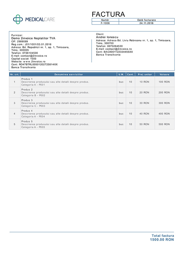 Poți emite facturi într-o limbă straină sau facturi bilingve, ca de exemplu: facturi în limba română și engleză.